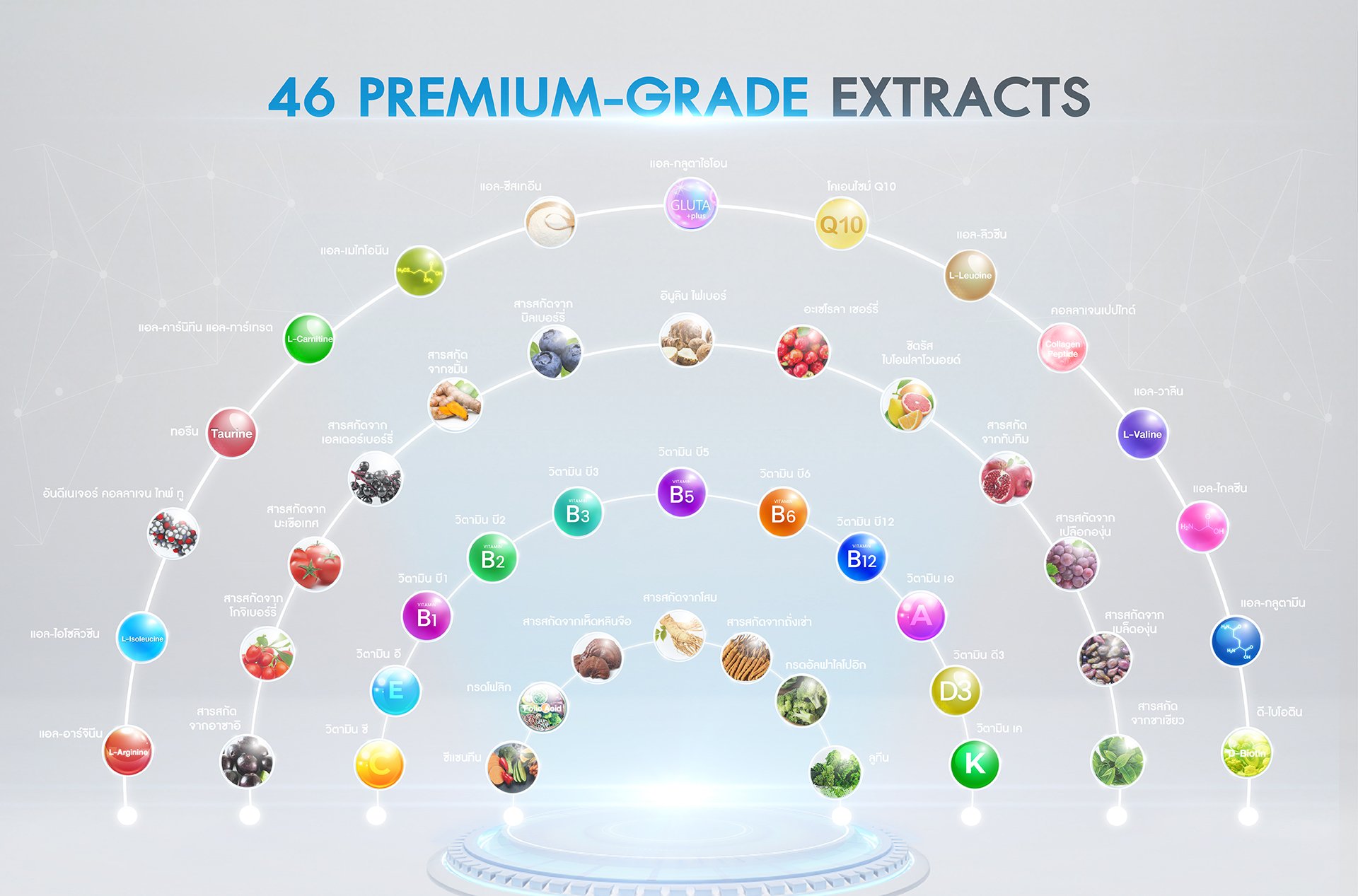 When you calculate the cost of obtaining dietary supplements with all 46 extracts from around the world, you would find that it would cost over 700 Baht per day.